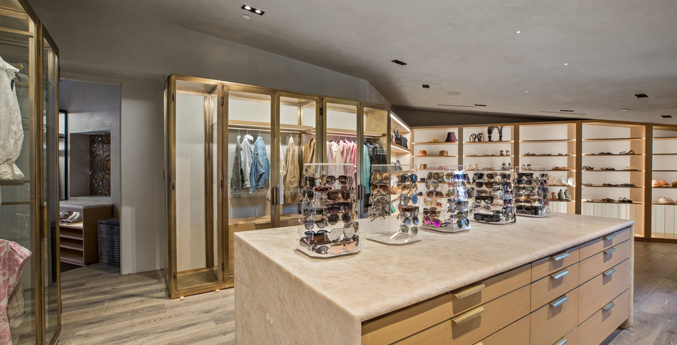 The busy couple has a talent for selecting exquisite real estate and their homes are routinely featured in Architectural Digest. This one is certainly no exception. Built in 1966 and brought up to the highest contemporary standard, the 8,520-square-foot home has seven bedrooms and eight baths. The high drama of the entry, with its 33-foot ceilings, curving stairwell leading to a second-floor catwalk and purple grand piano, is only a taste of what is to come. It leads into a large living room with a floor-to-ceiling glass wall with views over the canyon. The chef’s kitchen is the ideal venue for a chef-author to test sumptuous recipes and leads into a spacious family room. The master suite has a brass, concrete and clay fireplace, a balcony with far-reaching views and his-and-her dressing room and walk-in closets that are more like fashion showrooms and Italian-inspired “Glam Room.” All seven bedrooms are en-suite and have balconies. Also included is a gym and comfy home theater. Special finishes and decor include mandala-patterned ceilings from Thailand, ebonized cerused oak floors, clay and steel-rolled walls, onyx sinks and Italian quartz countertops.
