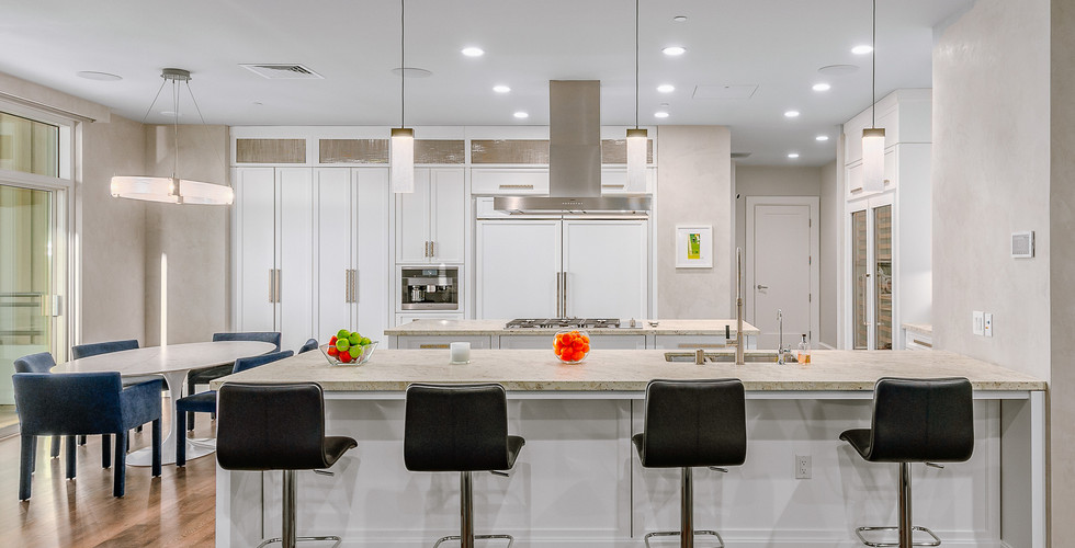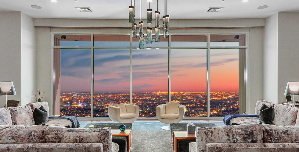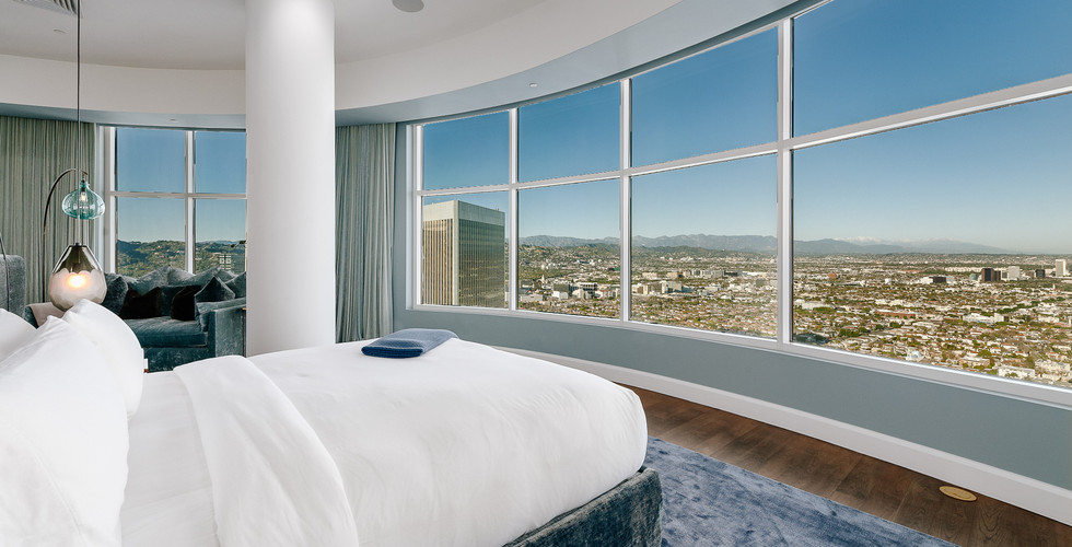 Perry’s entire 40th floor at the Century measures in at 9,318 square feet with ceiling-to-floor views over Los Angeles - visually stunning in daylight and sparkling with lights at night. It includes enormous rooms - a living room with two fireplaces and a huge master suite with multiple living areas. Overall, there are four bedrooms and eight baths, game room and home theater. The chef’s kitchen has island seating as well as a table for casual dining and a separate dining room with glass walls highlighting the views. Four terraces are perfect for entertaining and dining.
