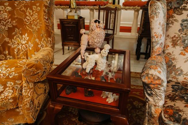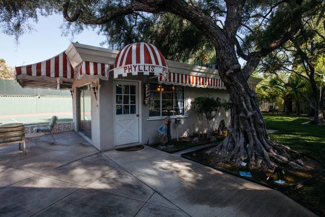 Phyllis’s home is a 26,000-square-foot structure on two acres in the city’s upscale Rancho Circle neighborhood with a copy of the Eiffel Tower rising 44 feet in the center of the house. The home has bulletproof windows, a basement disco and electric shutters that close instantly at the touch of a button. There is also a guest mansion, two swimming pools, a lagoon, tennis court, and Phyllis’s Place with grill, ice cream bar and soda fountain. The public part of the interior is sectioned into the French Room, Oriental Room and downstairs Cabaret, all massive to hold hundreds of guests, which included the occasional sit-down dinner for 500 where Phyllis used her own china, crystal and silver. Many of the major stars of the 1960s partied there, a home away from home for them when in Las Vegas.