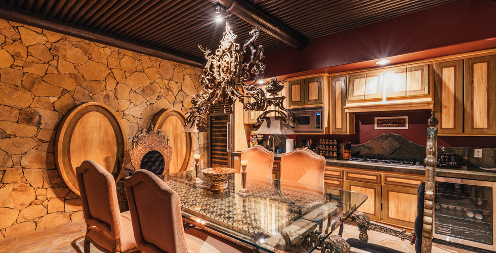 The home’s lower level houses a musician’s dream with a large professional recording studio with isolation booths and a control room. Also on the lower level is a screening room with concession stand and a wine-tasting and dining room. The garage and storage space are also on the bottom level.
