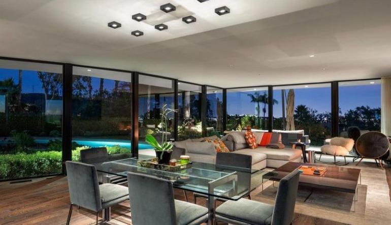 Defined as sleek, stylish by luxury brokerage Hilton & Hyland the updated mid-century house features four bedrooms, four bathrooms, a state-of-the-art kitchen, and of course, integrated security and sound systems. It also boasts city, ocean, and canyon views thanks to the floor-to-ceiling windows, as well as a pool and spa.