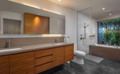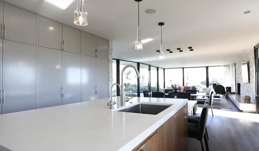 As one would expect from a tech designer the 3000 sq.ft. home is packed full of with smart features; Window curtains and blinds, lighting, temperature, security, music and video can all be enabled and configured via a special remote.