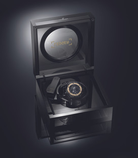 These will be delivered in a special presentation box made of a transparent smoked black sapphire chosen to illustrate the transparency and security of blockchain and decentralised currency. The case also makes an ironic reference to the solid, once impervious nature of traditional vaults and safes, which serve no function when it comes to digital assets.