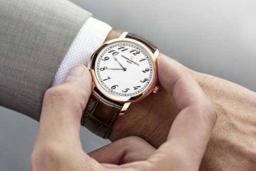 This model is notably characterised by a dial adorned with a circular cross weave guilloché motif housed in an 18K 5N pink gold case, of which the middle bears a meticulously executed base-relief engraving of a musical score. The latter echoes Ludwig van Beethoven's "Pastoral" Sixth Symphony in F major, hand-engraved on an olive-leaf background, decor inspired by a pocket-watch from the Vacheron Constantin Heritage collection, named « Les Bergers d’Arcadie », created in 1923. The pure sound along with the understated dial punctuated by a small seconds display and two power-reserve indicators (one for the strikework with a treble clef hand-shape and the other for the timekeeping functions) endow this watch with the Maison’s characteristic aura of elegance. The beige tone of the dial also reinforces the classicism of the watch, enhanced by the open-tipped hands and the typography of the hour numerals.
