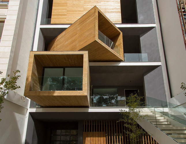 Like many other urban plots, the land for this project had a noticeably narrow façade-width compared with its depth of its length. Consequently, our expertise in transforming a two-dimensional façade to a three-dimensional one became indispensable. Here, the openness /closure of the building’s volume is a reference to traditional Iranian houses, which would dynamically serve as seasonal modes of habitation by offering both a Zemestan-Neshin (a winter living room) and Taabestan-Neshin (a summer living room) to their residents.
