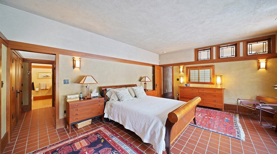 Located in Riverside, an upscale bedroom community of Chicago, it is on the grounds of Wright’s Avery Coonley estate (1906) in its own private walled garden. Originally the coach house (1912) built for the estate, it was converted to a family home in the 1950s and was completely renovated by its current owner between 2006 and 2007. Measuring 2,318 square feet, it has three en-suite bedrooms and two baths on a 130-foot by 120-foot lot. The contemporary interior has new radiant floor heating, open plan kitchen and dining area, large family room and Wright’s signature fireplace where he envisioned families gathering to converse and connect at the end of the day. The exterior was also restored to the original, including raised beds, landscaping and the reflecting pool, all enclosed by garden walls, making it very private and a perfect place to entertain.