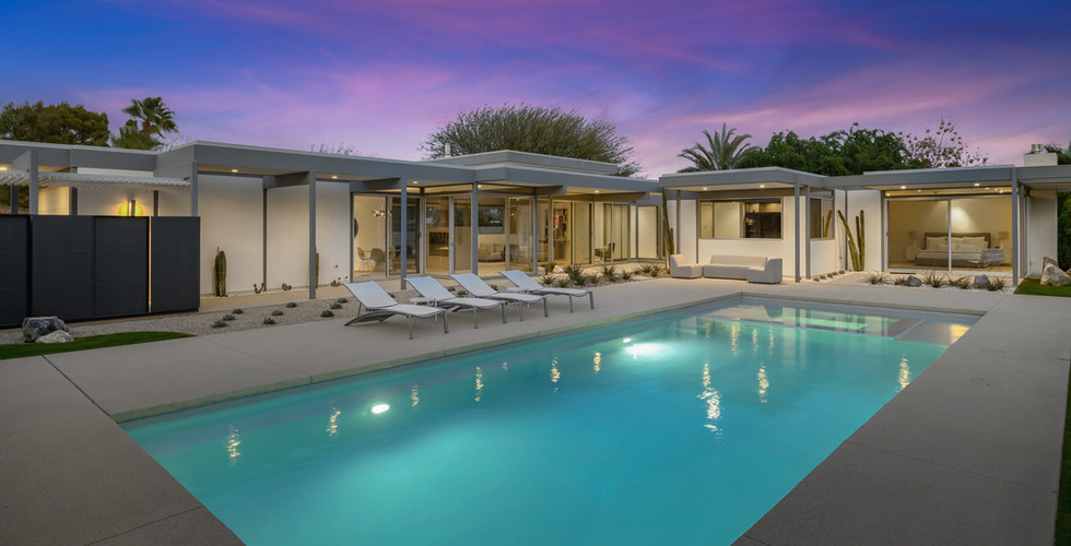 Wexler designed homes from his Palm Springs office for over 60 years and died in 2015 at the age of 89. His projects included houses, schools, hotels, banks, the Palm Springs International Airport, Dinah Shore's home (most recently purchased by Leonardo DiCaprio), and the Royal Hawaiian Estates development. His very last project was this steel-and-glass, mid-century modern home that captured the spirit of its desert location. He completed the plans two months before he died. The home was featured in Palm Springs Modernism Week 2016 and is now for sale at $2.435 million.