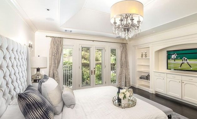 The property has 6 large bedrooms and 7 bathrooms and features a semicircular living room with tall ceilings and French doors , white marble flooring, and glass doors leading out to the gardens. There’s a formal dining room with black and white tiles, an updated kitchen with breakfast room, a wood-paneled den, and a beauty salon. The master suite comes with a dressing room and a marble bath. It also has a private salon and bar/study lounge.