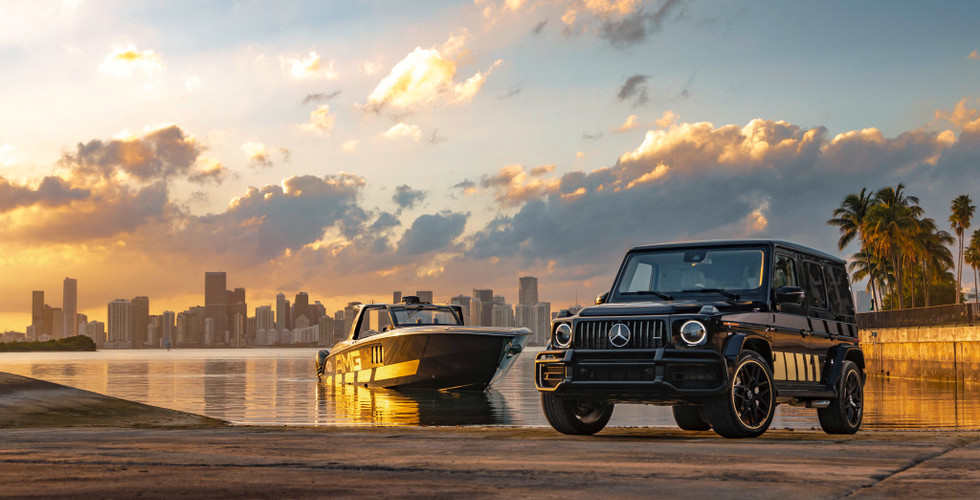The one-of-a-kind Mercedes-AMG G 63 Cigarette Edition, making its debut at the Miami International Boat Show, offers additional exclusiveness through an outstanding handcrafted individualization executed at the AMG Performance Studio in Affalterbach. It embodies a unique celebration of the ongoing collaboration between Mercedes-AMG and Cigarette Racing Team by sharing exclusive design finishes and special detailing that can only be found on this specific model.